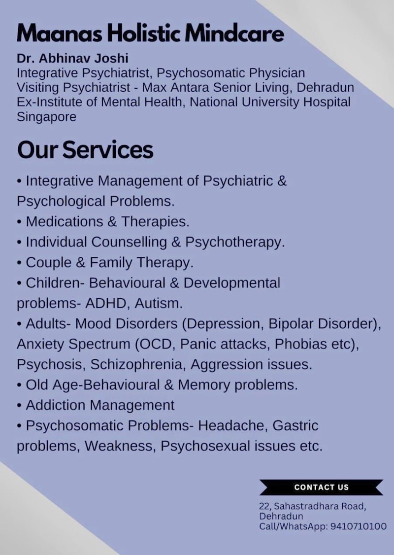Browse our verified directory of psychologists in Adhoiwala, Dehradun. Compare credentials, read patient reviews, check consultation fees, and filter by specialization. Every psychologist listed is verified through Google Business profiles with genuine patient feedback.