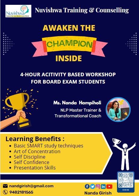 Nanda ma'am is a great trainer and educator. I enjoyed learning from ma'am. I recommend all to attend her NLP, soft skills, leadership programs for ultimate growth of life. Thank you so much for an eye-opening session ma'am.