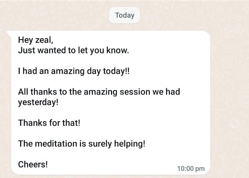 From the very first session, Zeal makes you feel like she is not just a therapist, but a friend. She listens to you intently and patiently, providing insights that resonate deeply and encourage personal growth. Her approach is both thoughtful and intelligent, making complex feelings more manageable and less intimidating. Zeal is remarkably accessible, ready to offer support whenever needed, which is incredibly reassuring. She can be your beacon of light in stormy weathers, guiding you safely to the shore.