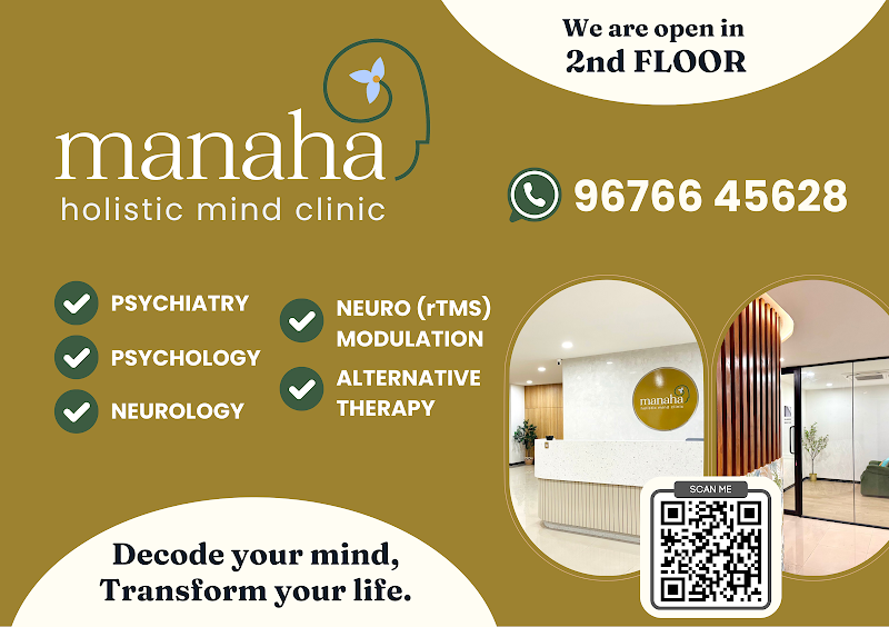 This clinic is located in Gandipet above Vijeta department stores. Dr. Jyothirmayi mam heads the clinic and herself is Sr. Psychiatrist. I am currently an patient with her alongside undergoing Psychotherapy with Dr. Rita Roy (Psychologist) for personal reasons. The clinic is really very calm and really holistic. I gave my ADHD test and now being treated for the same. In today modern world the stress has taken a big toll on everyone's life and I can recommend Manaha any time as well as Dr. Jyothirmayi mam for the treatment.