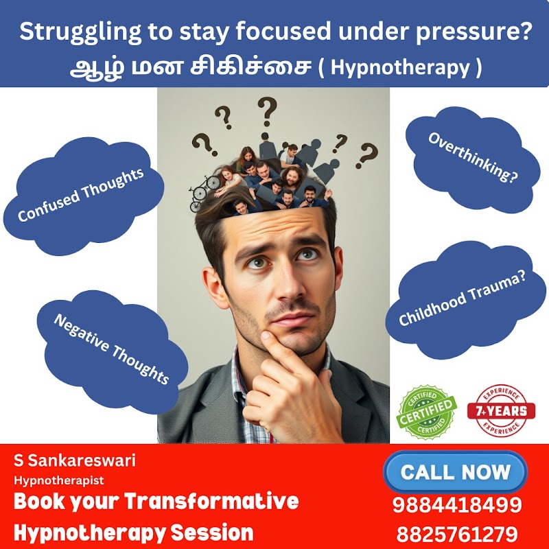 I was going through a tough time with anxiety and constant fear, and I met Sangareswari ma’am. She truly understood what I was going through and suggested hypnotherapy sessions. Honestly, those sessions changed my life. With each session, I started feeling lighter, calmer, and more confident. Both ma’am and sir were so supportive and caring throughout my journey — they genuinely put in so much effort to help me heal. Thanks to their guidance, I’ve completely recovered and feel like myself again after a long time. I still have a few sessions left, but I’m already in such a better place mentally and emotionally. I’m really grateful to both of them for helping me overcome my fear and anxiety. I’d highly recommend them to anyone who’s struggling — their treatment truly works and comes straight from the heart.